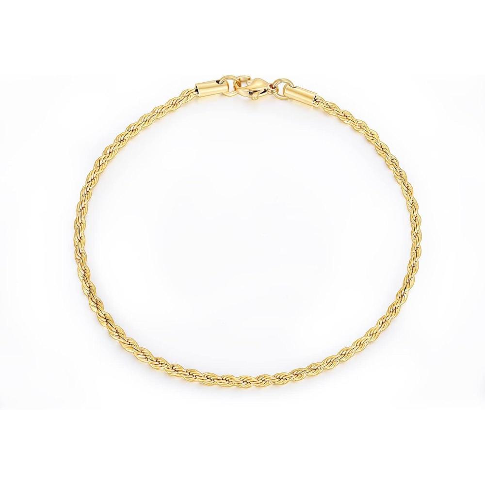 TRUMIUM 18k Gold Plated Link Chain Bracelets for Men Women 3mm Diamond-Cut Braided Mens Gold Rope Chain Length 7/8/9 inches(3mm Gold Rope – Length 7 inches)
