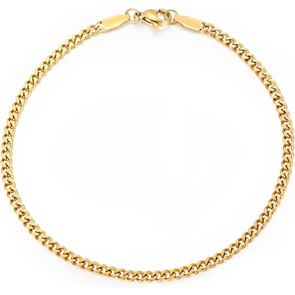 TRUMIUM 18k Gold Plated Link Chain Bracelets for Men Women 3mm Diamond-Cut Mens Gold Cuban Chain Length 7/8/9 inches(3mm Cuban Chain – Length 8 inches)