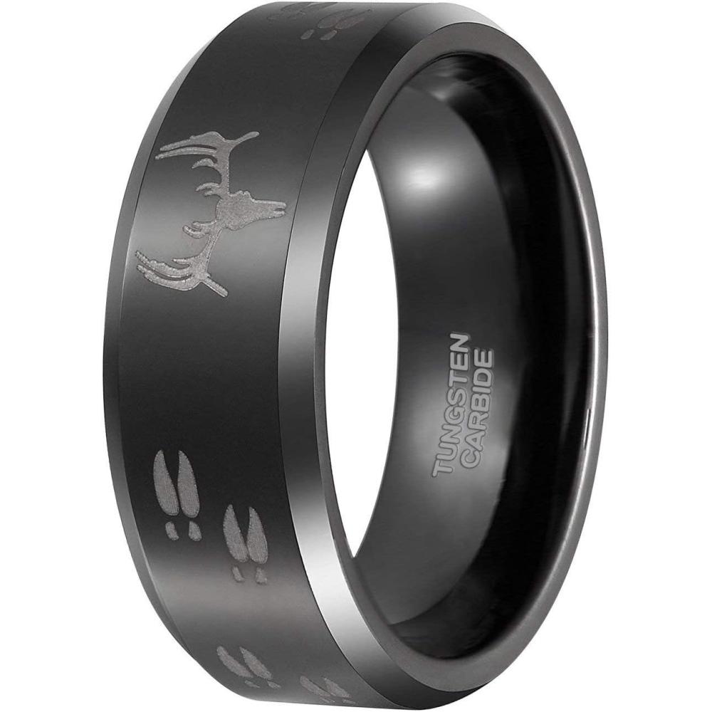 8mm Black Etched Deer Head Tungsten Carbide Wedding Band Men’s Hunting Ring Size 6-15