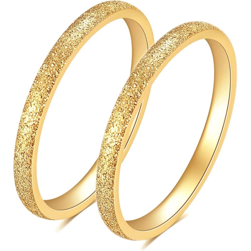 VQYSKO 2PCS 2mm14K Gold Filled Rings Stacking Rings for Women Stackable Thin Sand Blast Glitter Finish Ring 4-9(Gold-2MM-2PCS)