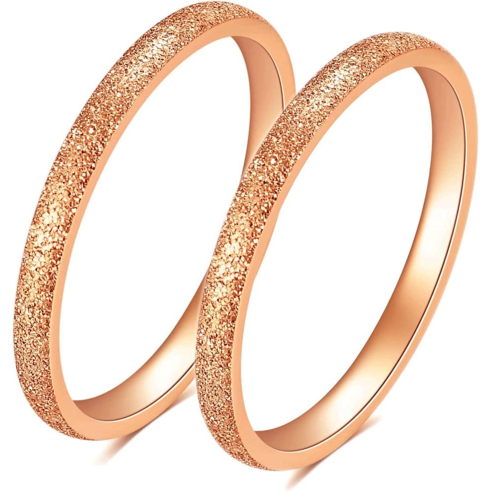 VQYSKO 2PCS 2mm14K Gold Filled Rings Stacking Rings for Women Stackable Thin Sand Blast Glitter Finish Ring 4-9(Rose Gold-2MM-2PCS)