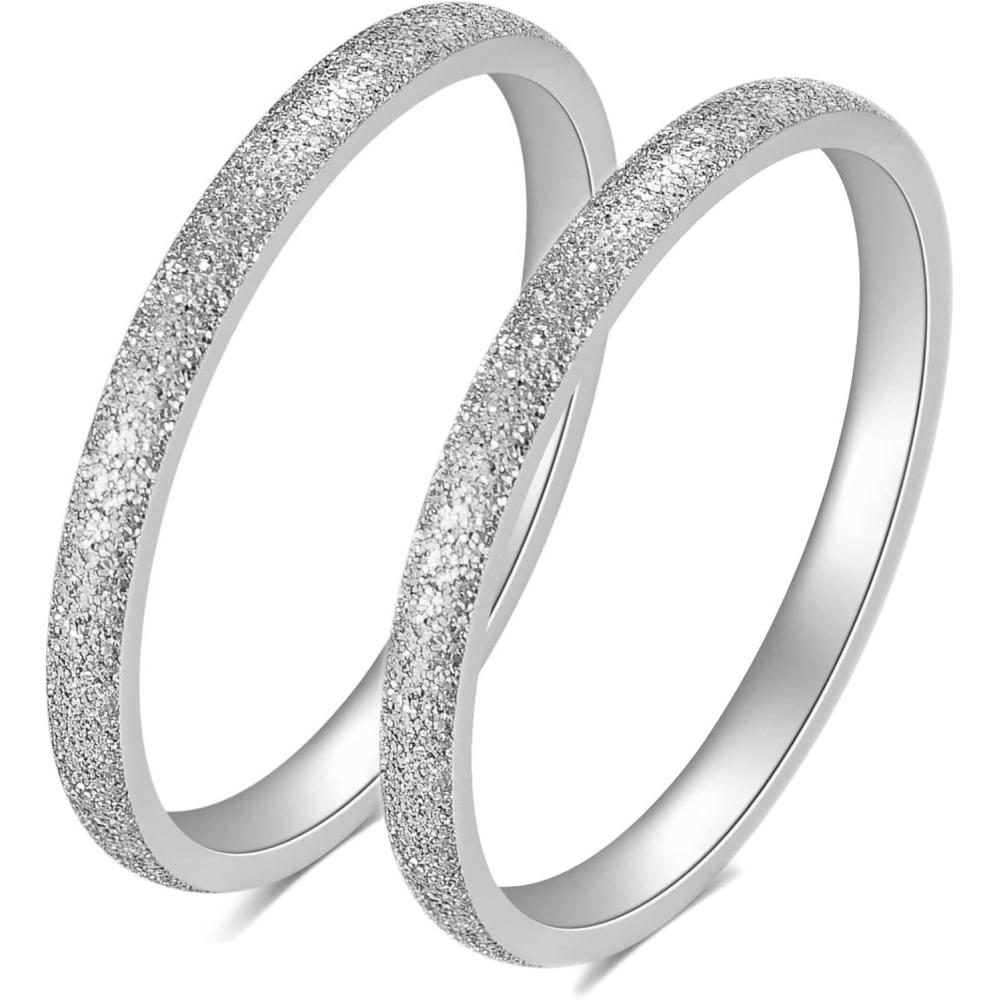 VQYSKO 2PCS 2mm14K Gold Filled Rings Stacking Rings for Women Stackable Thin Sand Blast Glitter Finish Ring 4-9(Silver-2MM-2PCS)