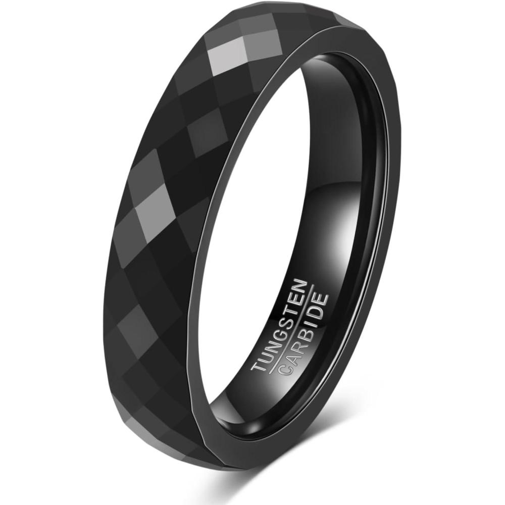 VQYSKO 4mm 6mm Tungsten Carbide Wedding Band Ring fo Woman | Gold Dome Polished Tungsten Carbide Band Ring fo Man | Comfort Fit for Size 5-14(Black-4mm)