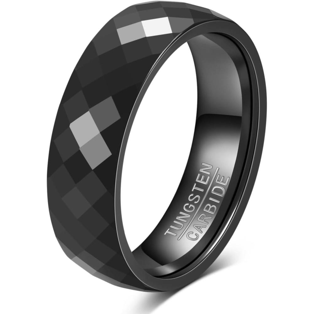 VQYSKO 4mm 6mm Tungsten Carbide Wedding Band Ring fo Woman | Gold Dome Polished Tungsten Carbide Band Ring fo Man | Comfort Fit for Size 5-14(Black-6mm)