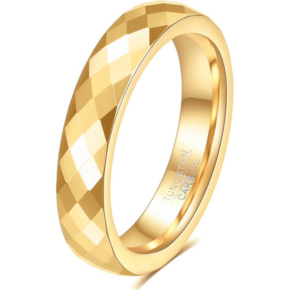 VQYSKO 4mm 6mm Tungsten Carbide Wedding Band Ring fo Woman | Gold Dome Polished Tungsten Carbide Band Ring fo Man | Comfort Fit for Size 5-14(Gold -4mm)