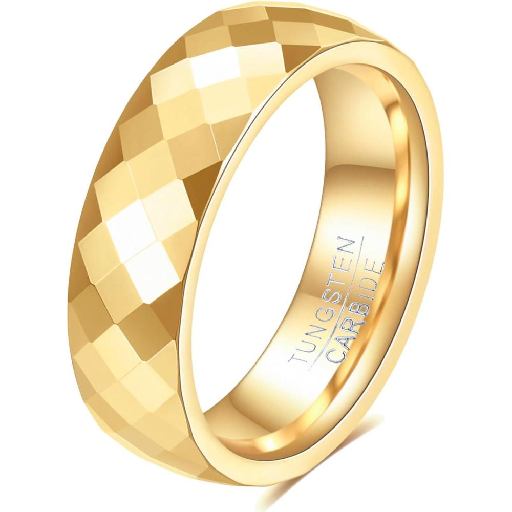VQYSKO 4mm 6mm Tungsten Carbide Wedding Band Ring fo Woman | Gold Dome Polished Tungsten Carbide Band Ring fo Man | Comfort Fit for Size 5-14(Gold -6mm)