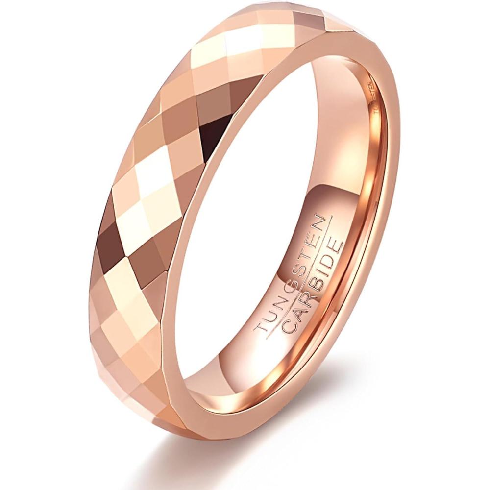 VQYSKO 4mm 6mm Tungsten Carbide Wedding Band Ring fo Woman | Gold Dome Polished Tungsten Carbide Band Ring fo Man | Comfort Fit for Size 5-14(Rose Gold-4mm)