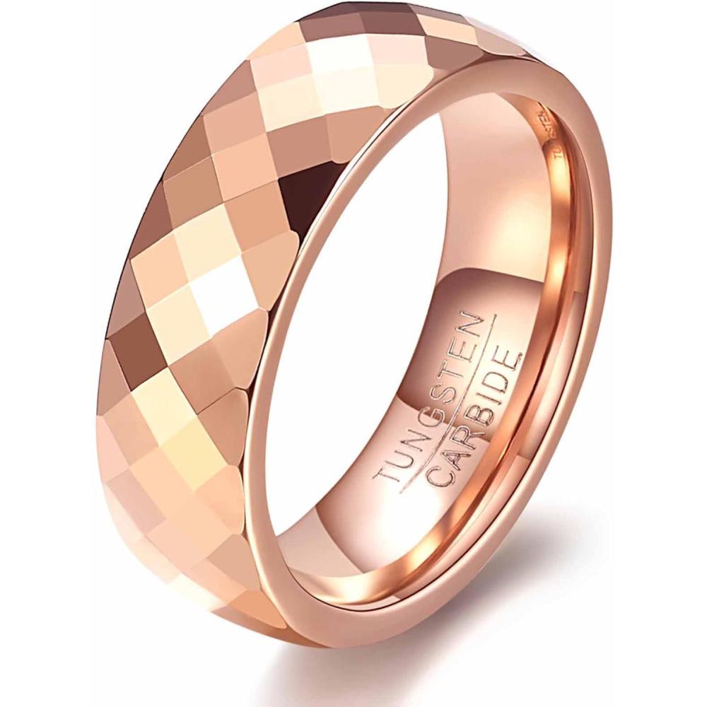 VQYSKO 4mm 6mm Tungsten Carbide Wedding Band Ring fo Woman | Gold Dome Polished Tungsten Carbide Band Ring fo Man | Comfort Fit for Size 5-14(Rose Gold-6mm)