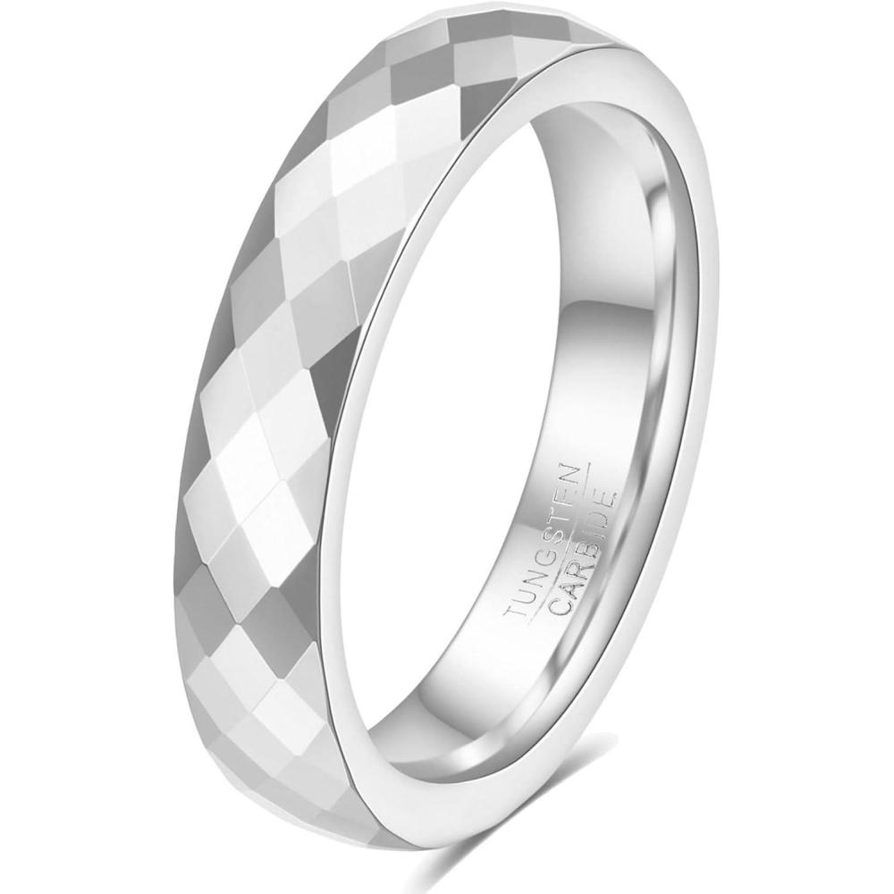 VQYSKO 4mm 6mm Tungsten Carbide Wedding Band Ring fo Woman | Gold Dome Polished Tungsten Carbide Band Ring fo Man | Comfort Fit for Size 5-14(Silver-4mm)