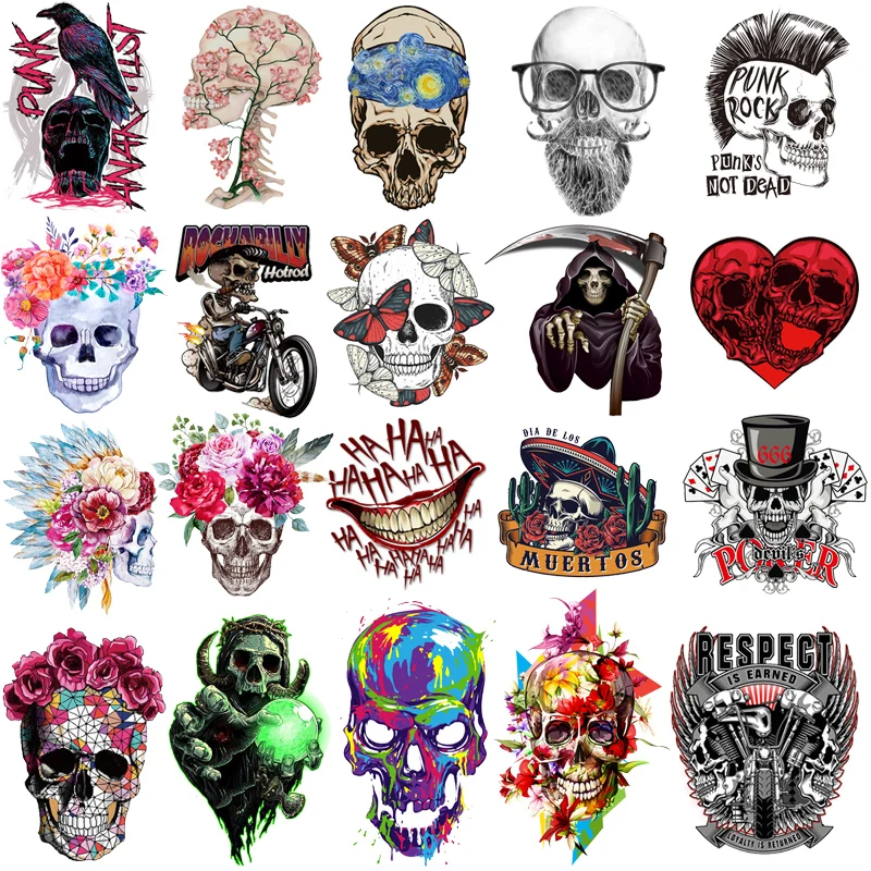 Buy Pulaqi Skull Iron On Transfer Patches for Clothing - Vinyl Heat Transfer Thermal Stickers on Clothes - Hippie Grim Reaper Appliques Online