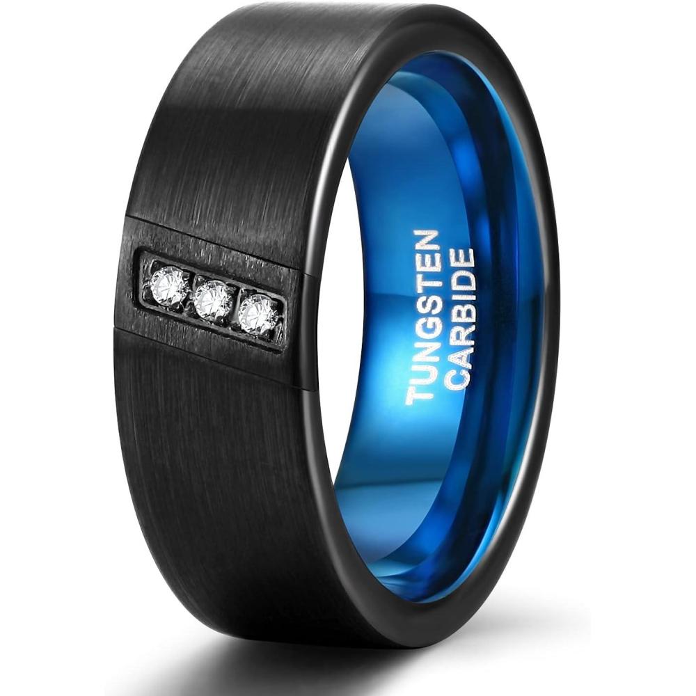 TRUMIUM 8mm Wedding Bands For Men Women Cubic Zirconia Tungsten Nen Wedding Ring Fake Diamonds Silver/Blue/Black Eternity Band Ring Comfort Fit Size 7-13(8mm Black)