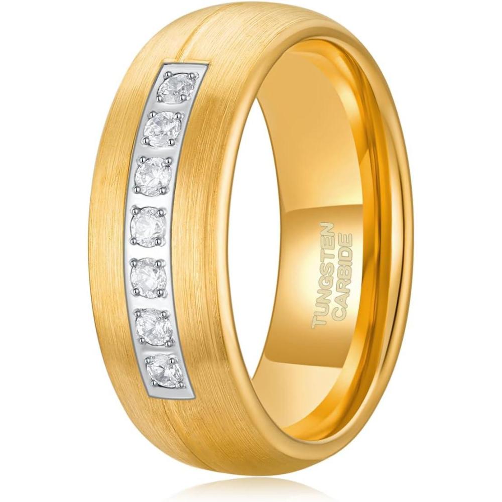 TRUMIUM 6mm 8mm Mens Tungsten Wedding Bands with Cubic Zirconia Eternity Ring CZ Inlaid Black Silver Plated 24K Gold Plated Tungsten Carbied Rings High Polish Size 7-13(8mm 24k gold plated)