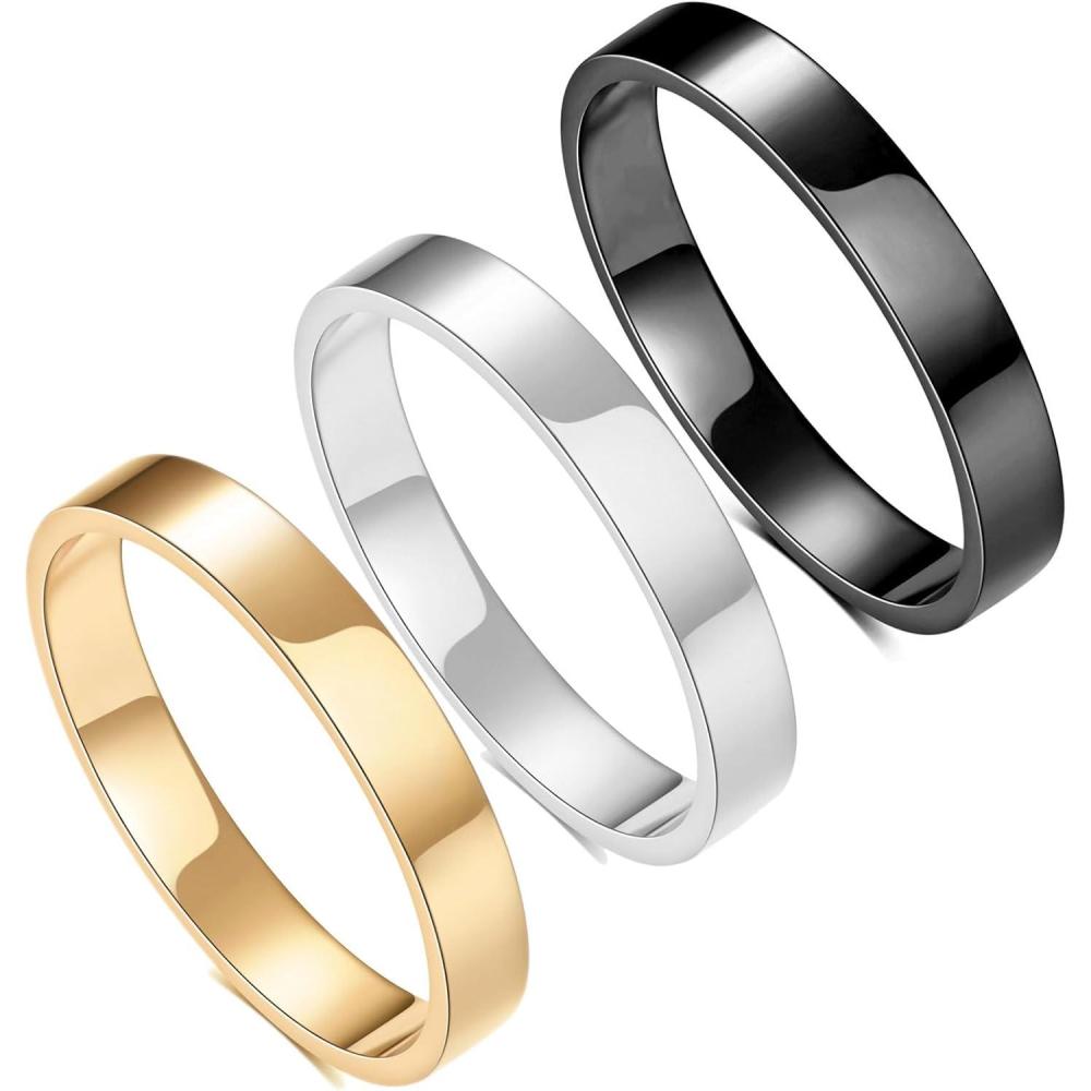 VQYSKO 2PCS 14K Gold Plated Stainless Steel Modern Thin Stackable Band Rings for Women, Size 3-10(3MM-3PCS)
