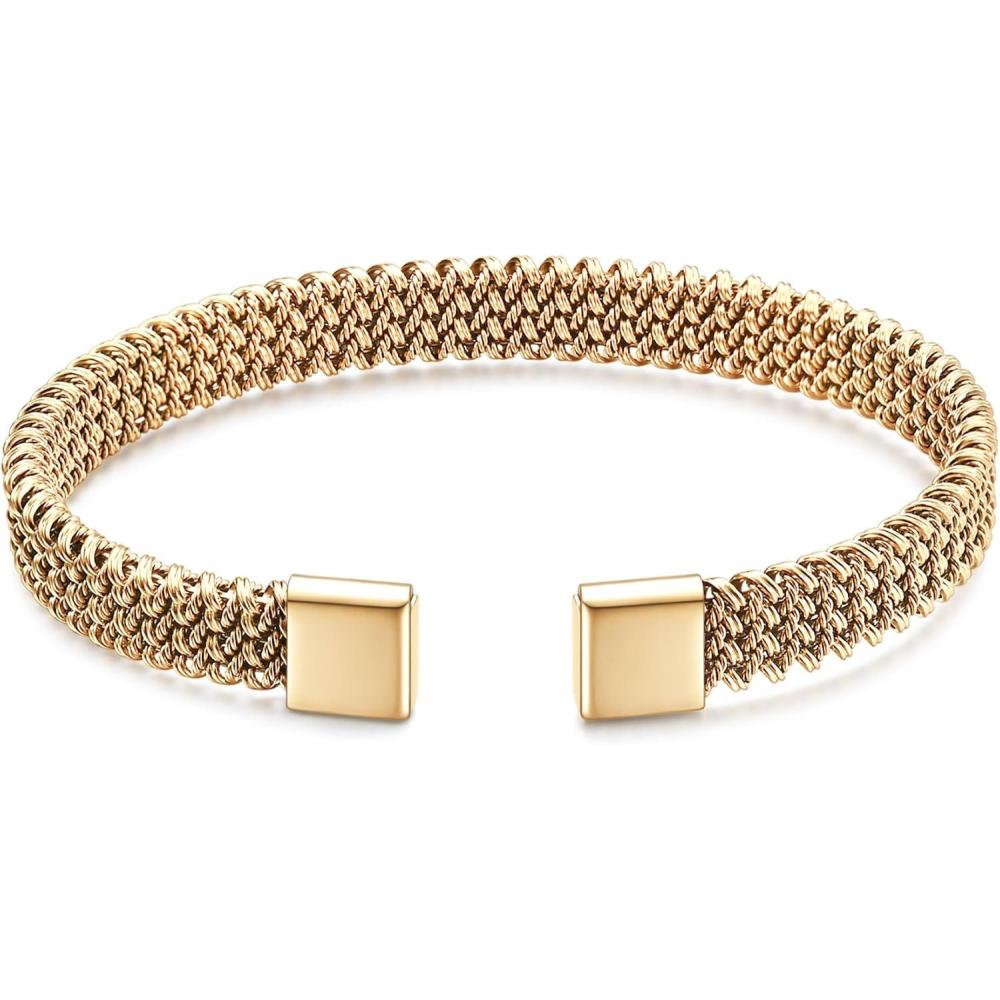 VQYSKO Gold Mesh Cuff Bracelet fo Woman Man,18K Gold Plated Stainless Steel Mesh Adjustable Open Bracelet Fashion Jewelry for Women Jewelry Women