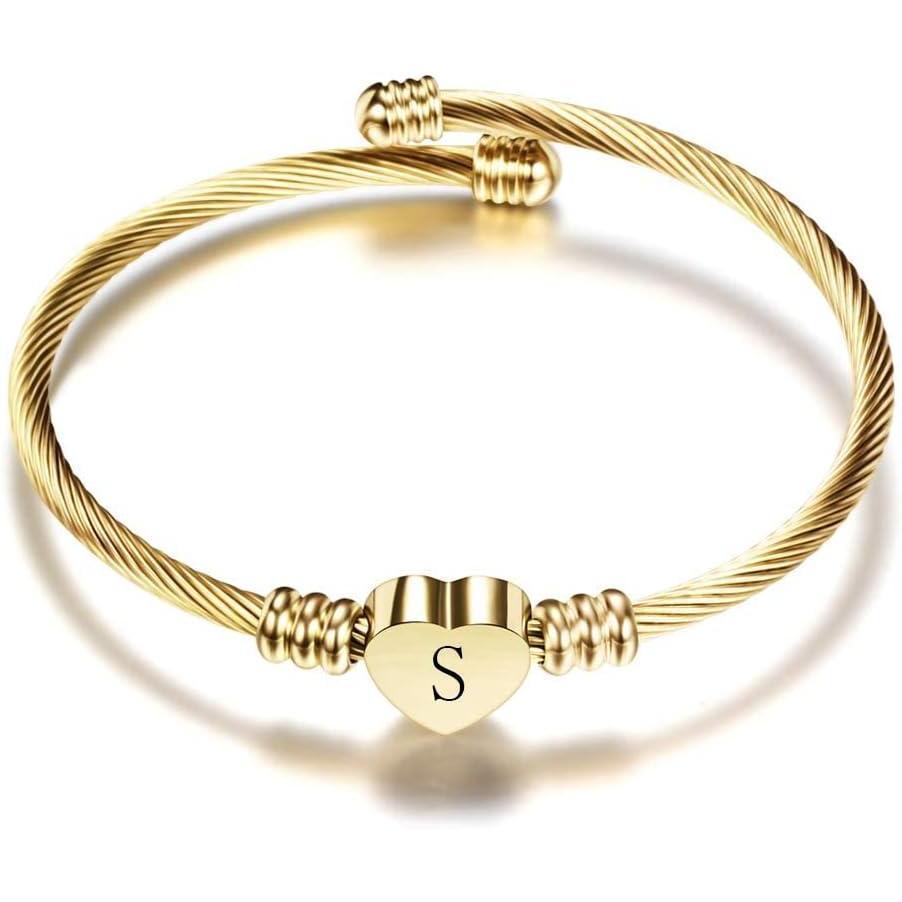 VQYSKO Gold Bracelets for Girls-A to Z Stainless Steel Heart Initial Girl Jewellery, Birthday Gifts for Girls(Gold)