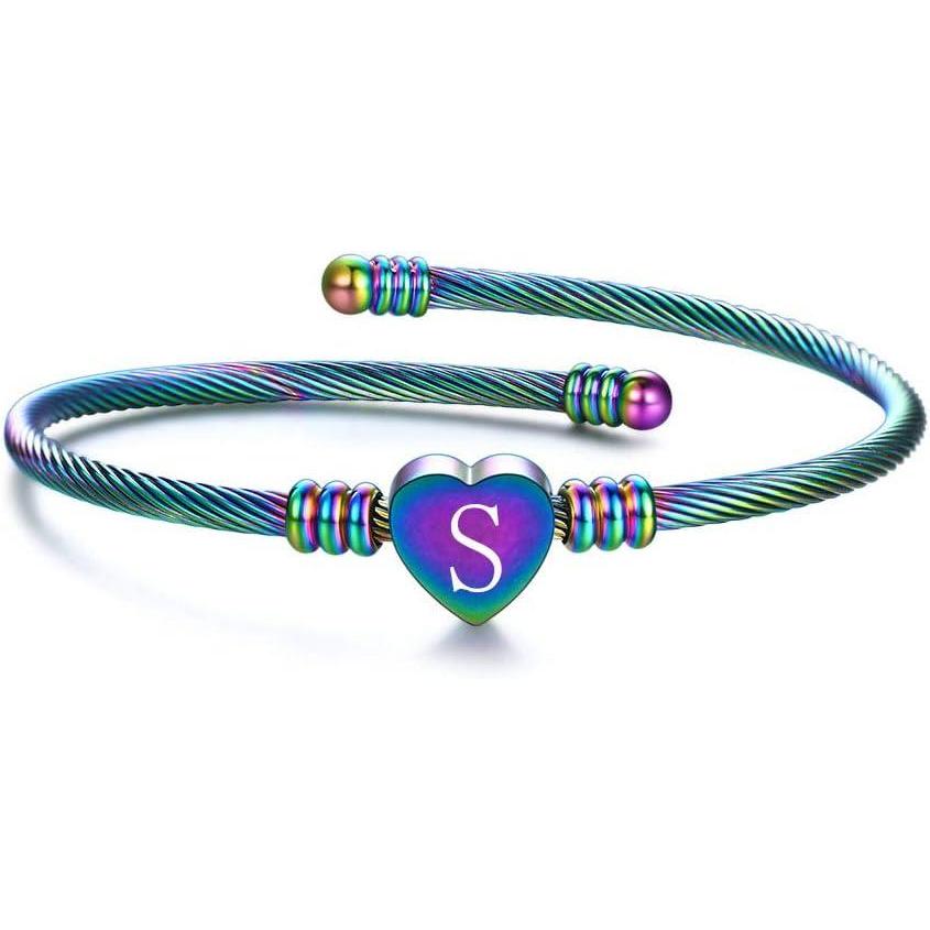 VQYSKO Gold Bracelets for Girls-A to Z Stainless Steel Heart Initial Girl Jewellery, Birthday Gifts for Girls(Rainbow)