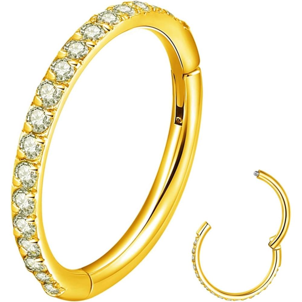 ORANGELOVE 20G 18G 16G Clear CZ Nose Ring Hoop 316L Surgical Steel Seamless Silver Septum Ring Clicker Jewelry Cartilage Earring Ear Piercing Hoop Earrings for Women Men Helix Rook Lobe Conch Tragus Daith Lip Hinged Piercing Jewelry with Cubic Zirconia(1pc/Clear CZ 16G 10mm Gold)