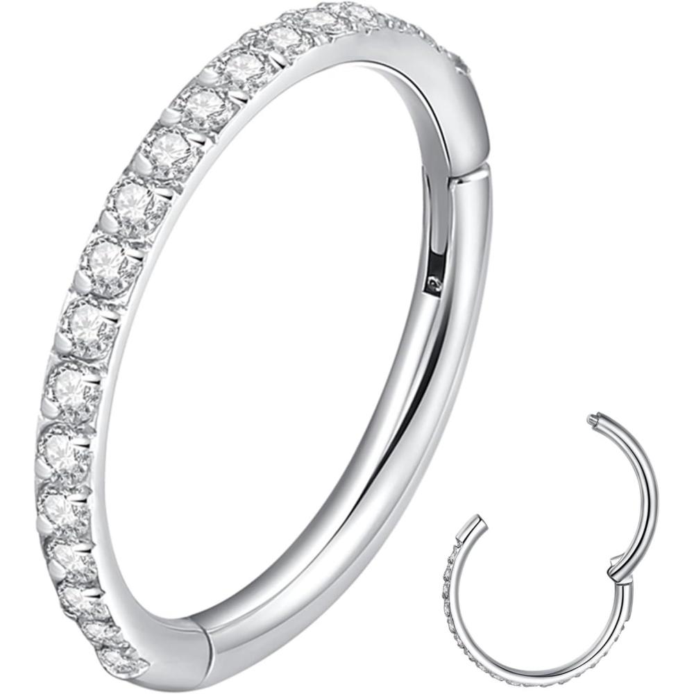 ORANGELOVE 20G 18G 16G Clear CZ Nose Ring Hoop 316L Surgical Steel Seamless Silver Septum Ring Clicker Jewelry Cartilage Earring Ear Piercing Hoop Earrings for Women Men Helix Rook Lobe Conch Tragus Daith Lip Hinged Piercing Jewelry with Cubic Zirconia(1pc/Clear CZ 16G 12mm Silver)