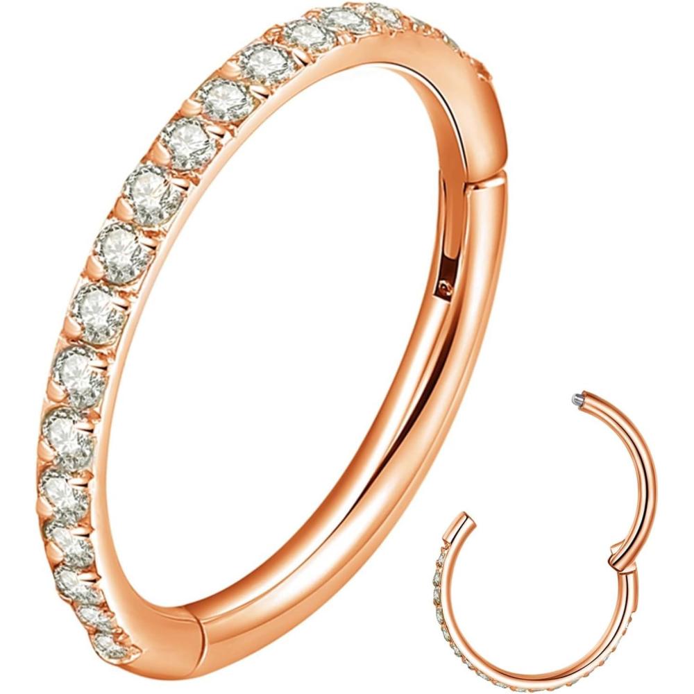 ORANGELOVE 20G 18G 16G Clear CZ Nose Ring Hoop 316L Surgical Steel Seamless Silver Septum Ring Clicker Jewelry Cartilage Earring Ear Piercing Hoop Earrings for Women Men Helix Rook Lobe Conch Tragus Daith Lip Hinged Piercing Jewelry with Cubic Zirconia(1pc/Clear CZ 16G 12mm Rose Gold)